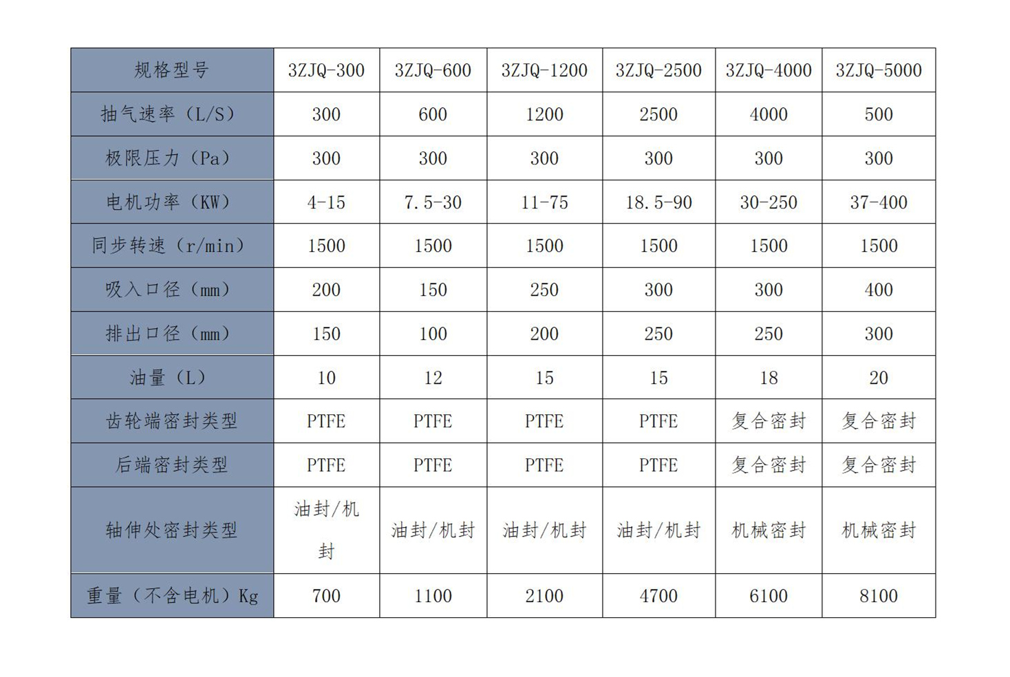 雙級氣冷羅茨真空泵技術(shù)參數(shù)